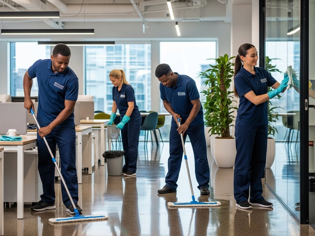 Professional janitorial services including cleaning, restocking, and general upkeep of facilities.