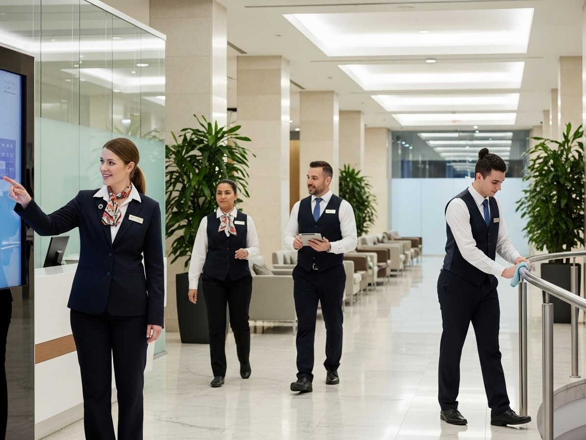 Trained staff to assist with welcoming visitors, managing entrances, and supporting administrative tasks at your property.